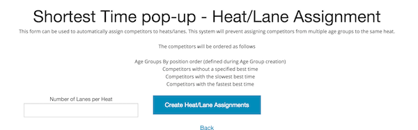 - Have the system pre-assign competitors to heats/lanes based on their entered best times
